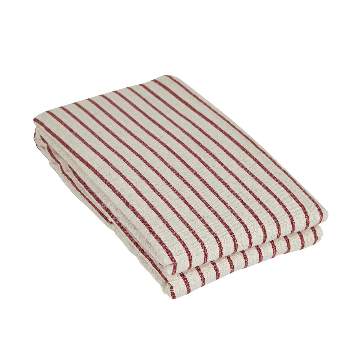 Duk TINA, smalrandig i rött på ljus linnefärgad botten