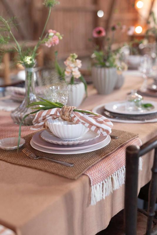 Duka gärna med matchande tygservetter och addera en bordsfilt under duken för en stilfull dukning. Intrycket blir genast lite festligare.