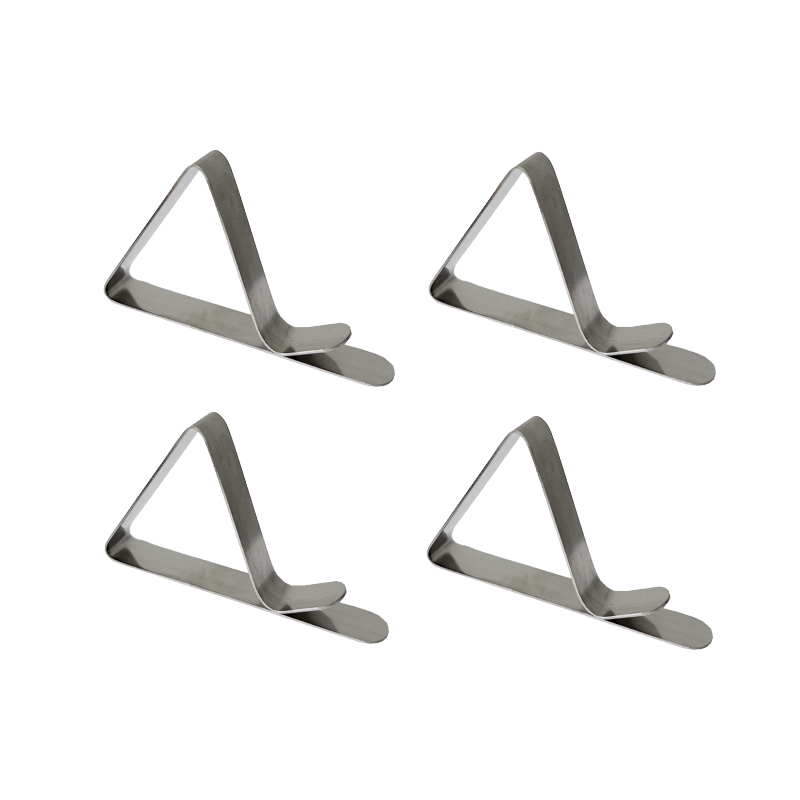 Stl. 7,8x5x1,2 cm, Bordduksklämmor i rostfritt stål, 4st klämmor per förp. Passar till bordskiva med tjocklek 1 - 4,5 cm.