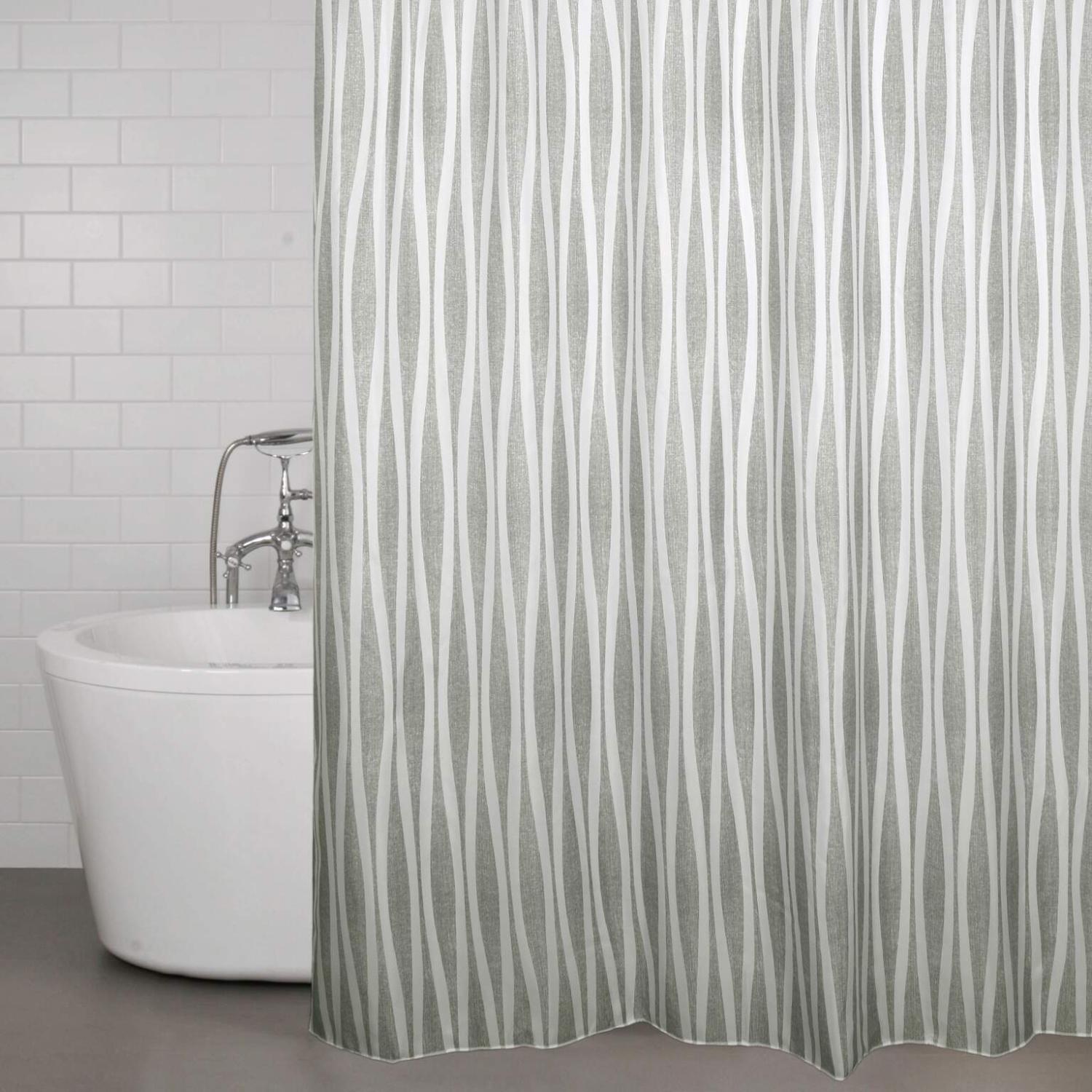 Stl. 180x200 cm, Duschdraperi WAVE med vågigt mönster. Inkl 12 st vita ringar för enkel upphängning. Mönster skapat av svensk designer.