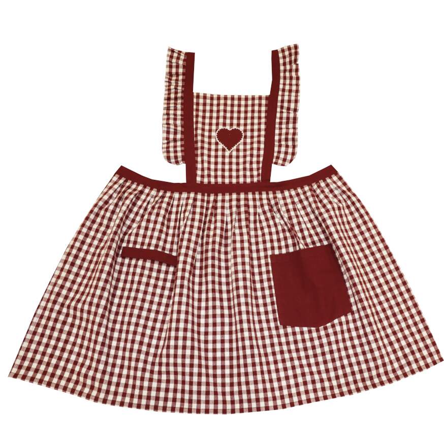 Förkläde JULIA, rutig i rött och vitt med ett rött hjärta med brodyr runt