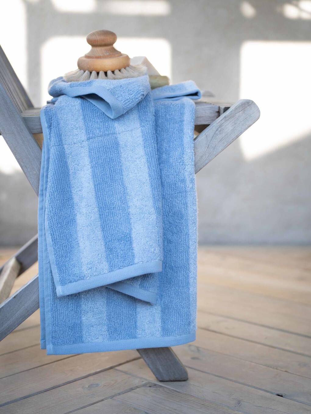 Frotté STRIPE randig handduk i ljusblå finns i tre olika storlekar