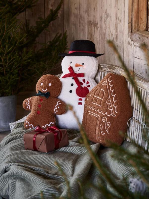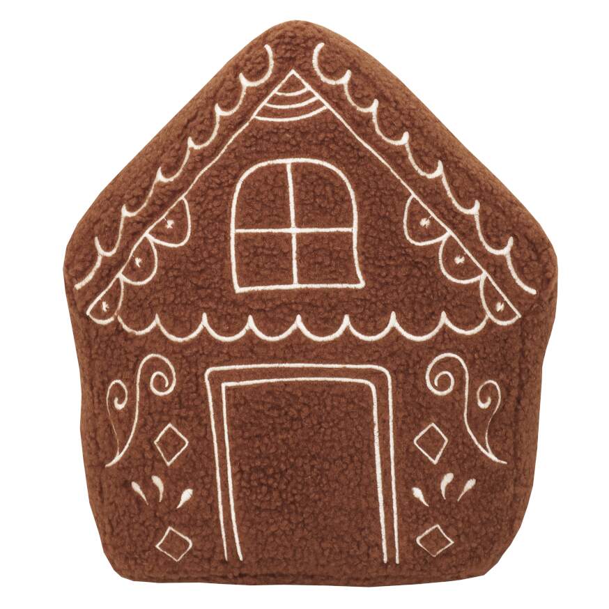 Fylld kudde PEPPARKAKSHUS i teddy med broderad kristyr