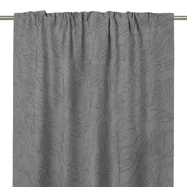 Gardin DENISE, extra bred och extra lång med broderat abstrakt mönster i grått