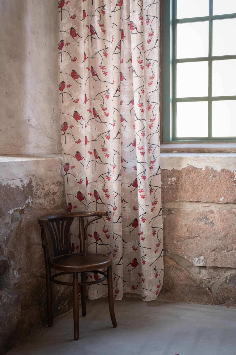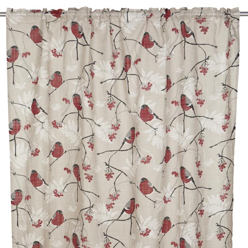 Gardin DOMHERRE med röda Domherrar på gråbeige bottenfärg