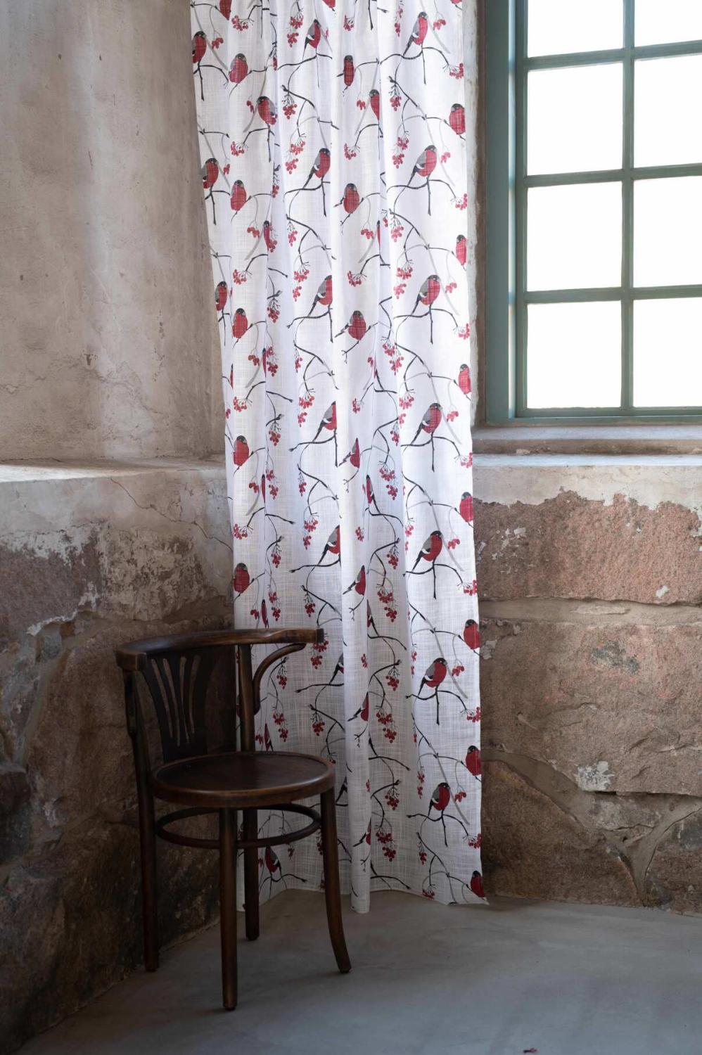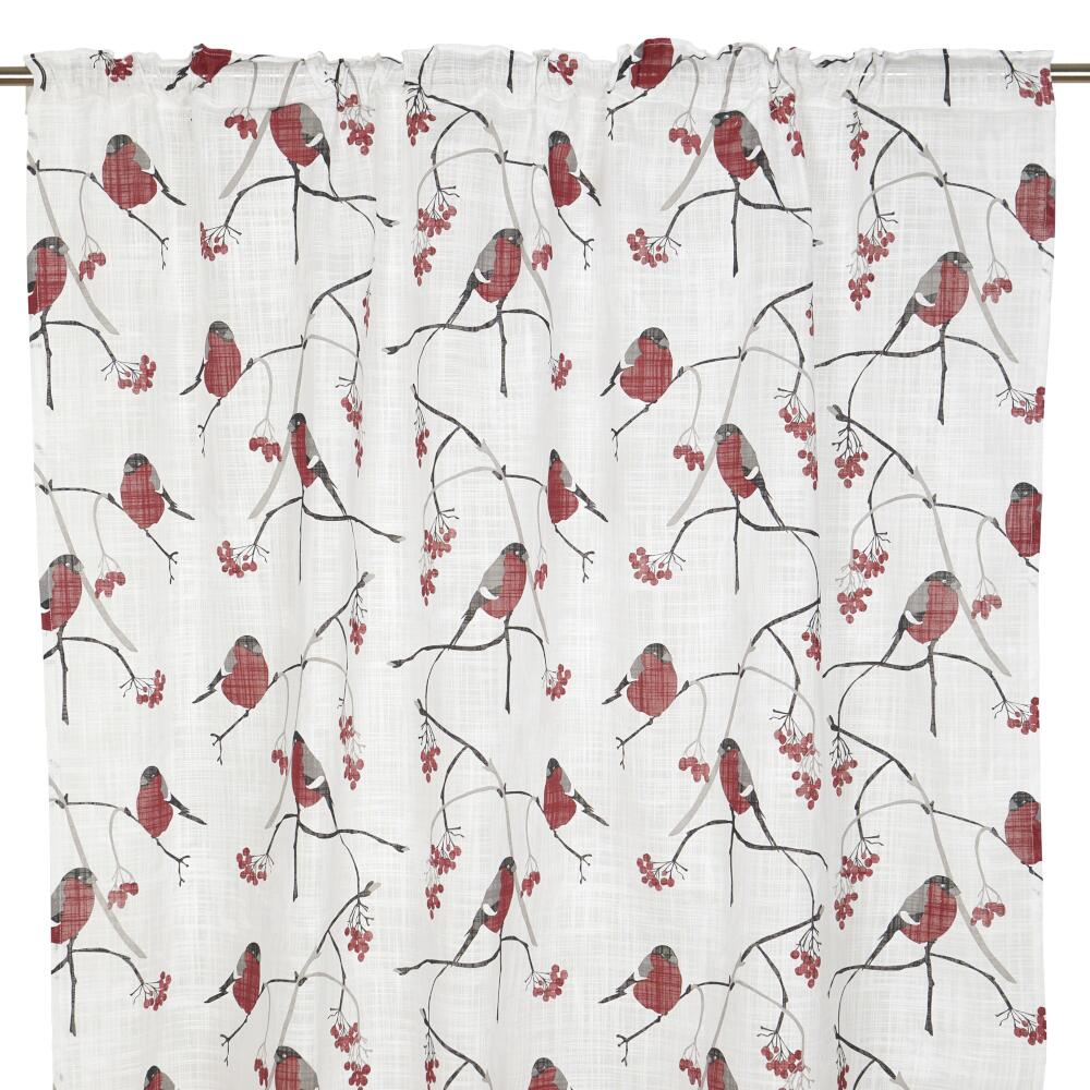 Gardin DOMHERRE med röda Domherrar på vit bottenfärg