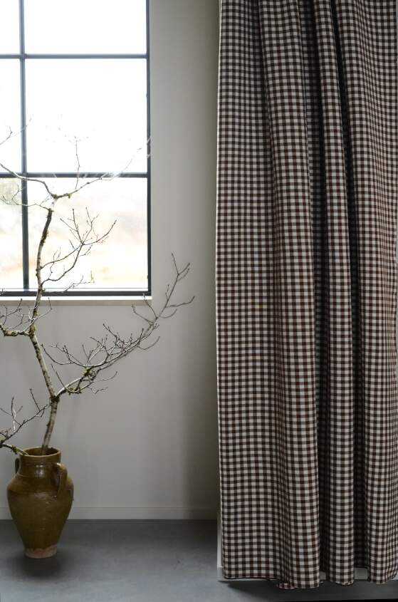 Gardin FREJA, smårutig i brunt och vitt