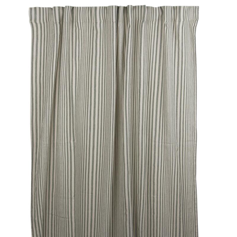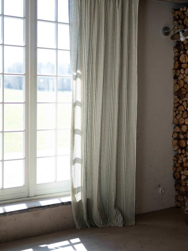 Gardin KARIN, garnvävd, smalrandig i grönt, enzymtvättad