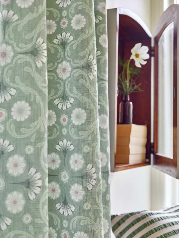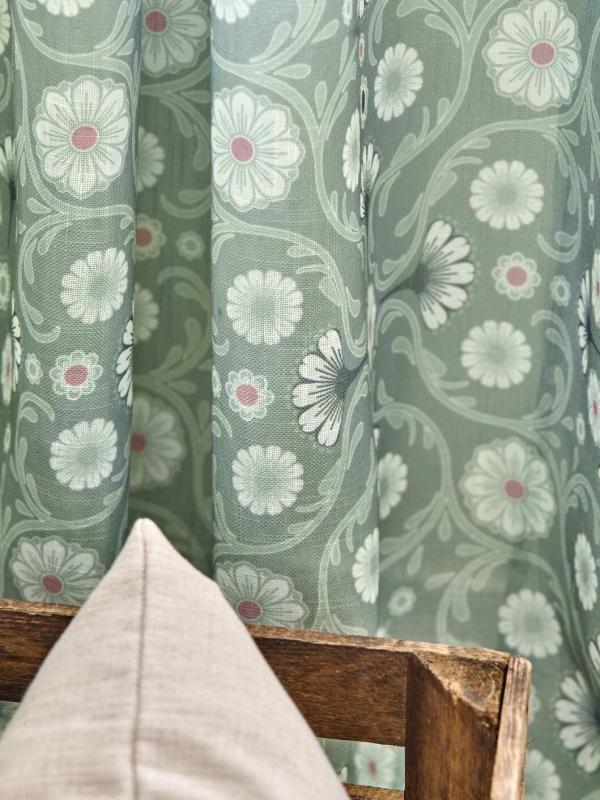 Gardin Malva med blommor i medaljongmönster i gröna toner