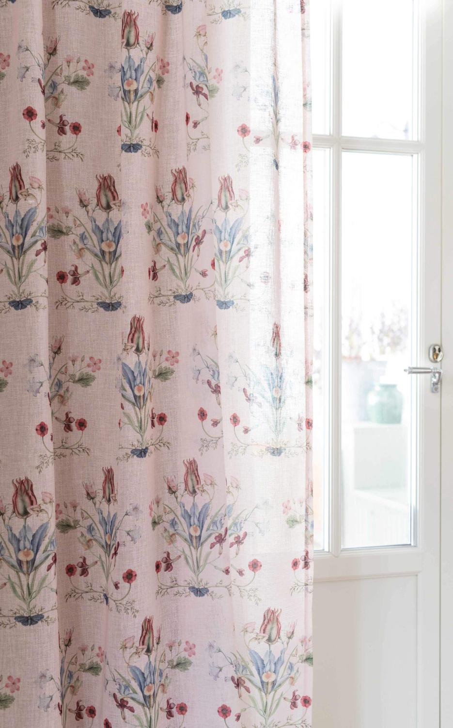 Gardin VENDELA med blommor i bukettliknande mönster på rosa bottenfärg