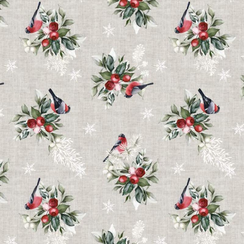 Gardinkappa BULLFINCH på metervara med Domherrar
