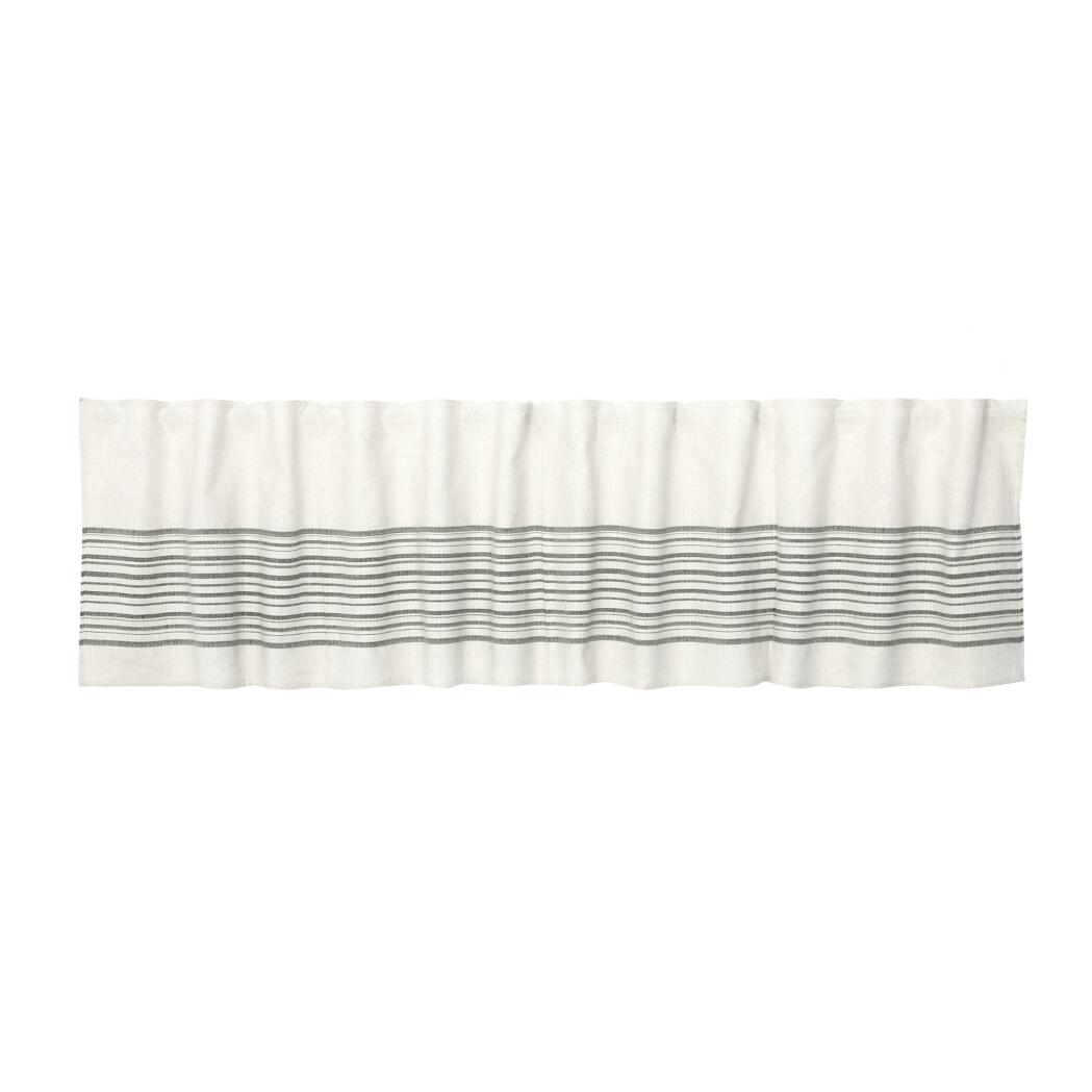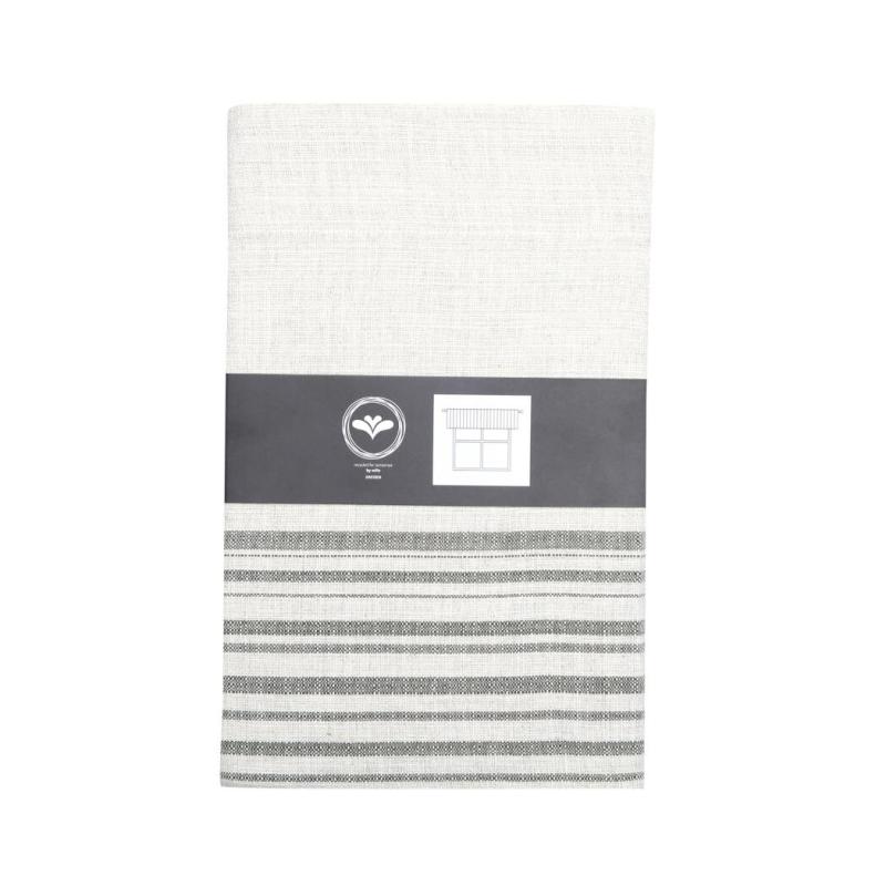 Gardinkappa CHARLES, offwhite bottenfärg med vågräta ränder i olivgrönt i nederkanten