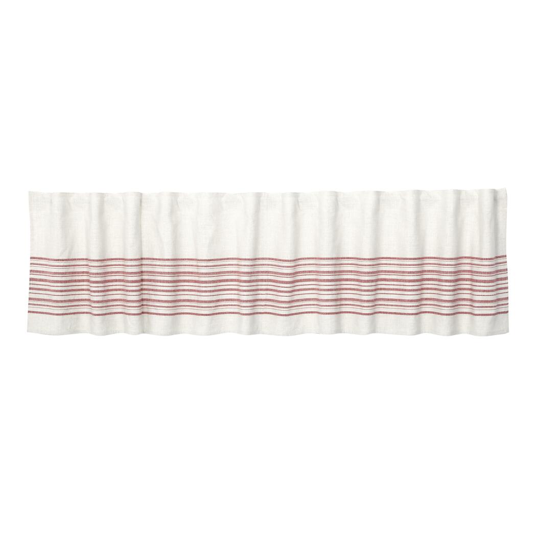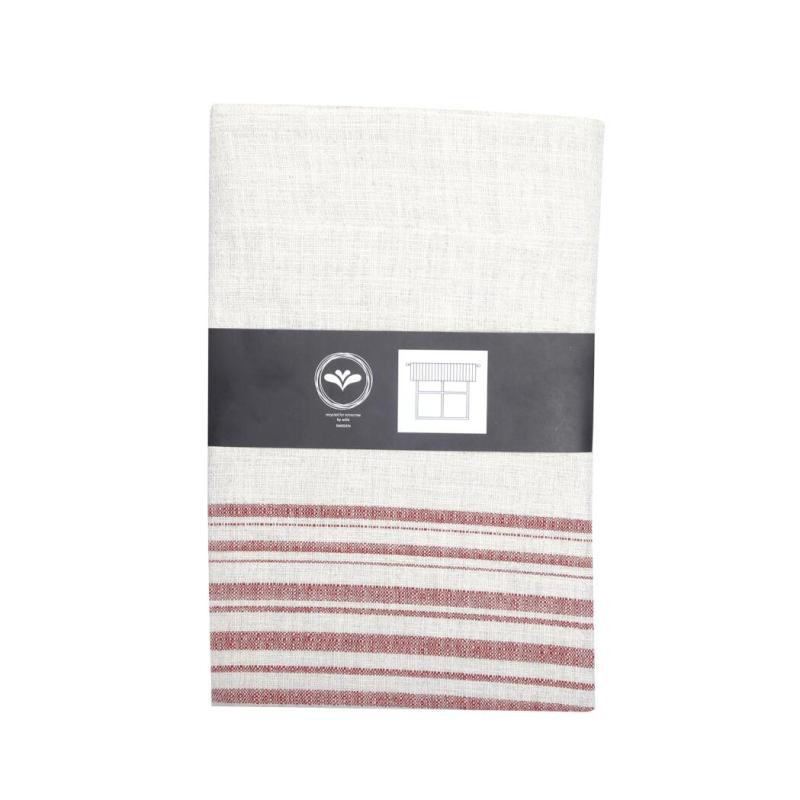 Gardinkappa CHARLES, offwhite bottenfärg med vågräta ränder i rött i nederkanten