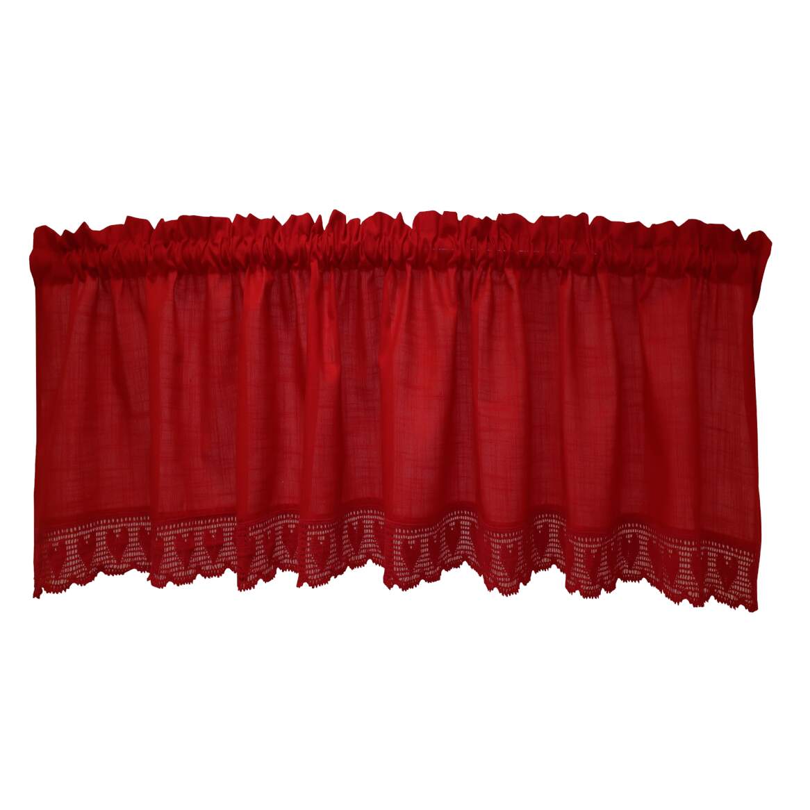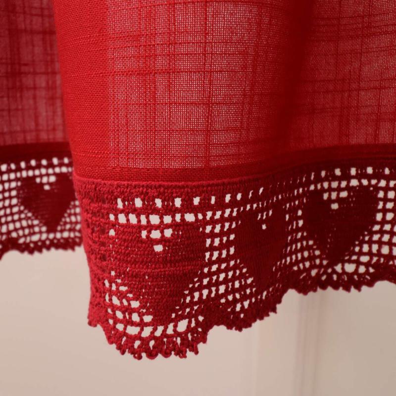 Gardinkappa HJÄRTER, enfärgat röd med virkad spets i nederkanten