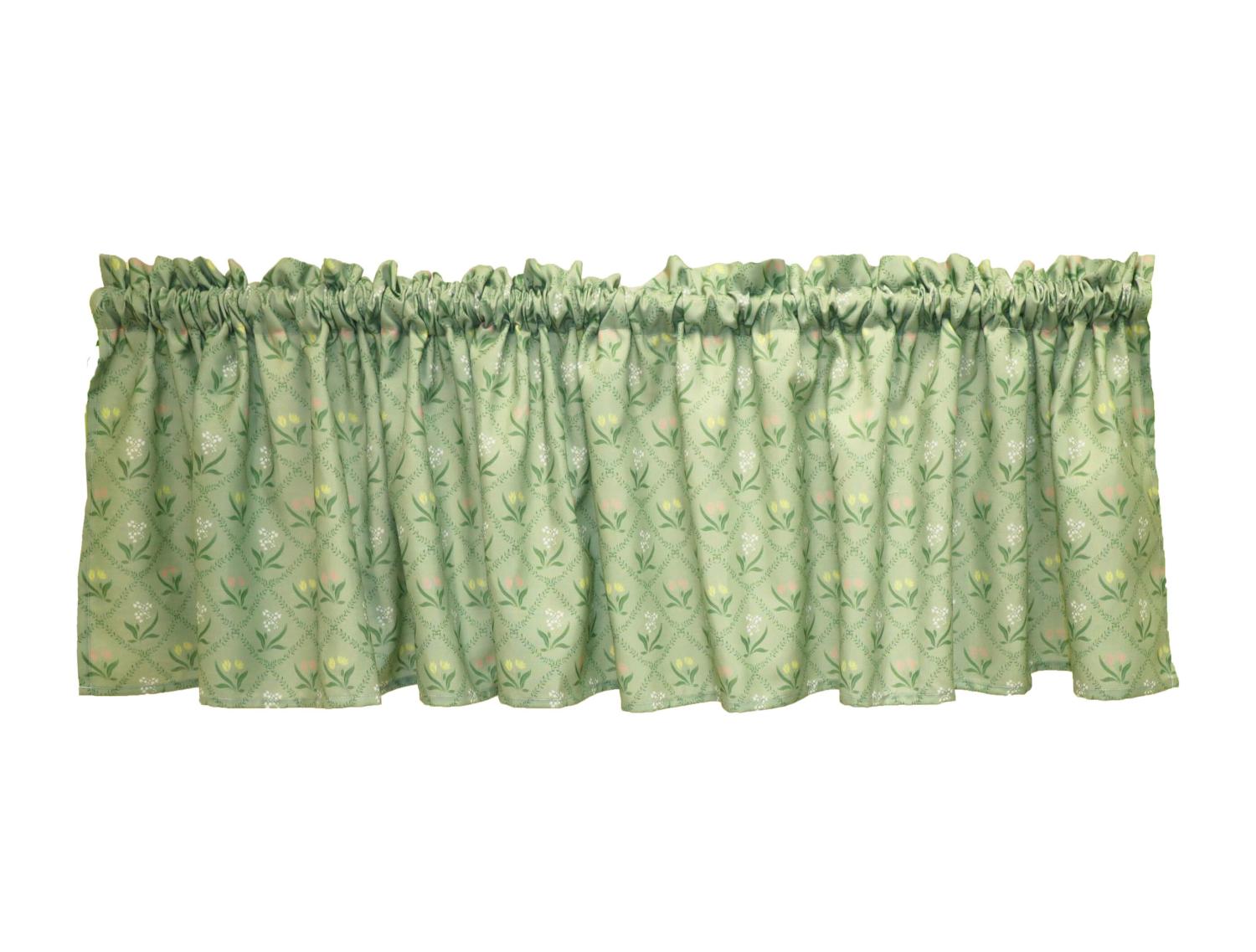 Gardinkappa PETRA med små blommor i rutmönster med grön bottenfärg