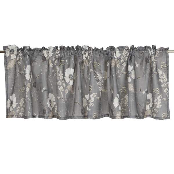 Gardinkappa SABINE med blommor och blad i beige på grå bottenfärg