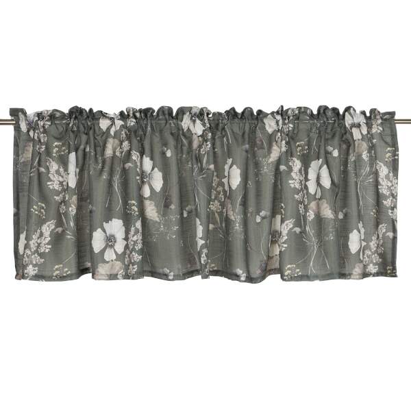 Gardinkappa SABINE med blommor och blad i beige på grön bottenfärg