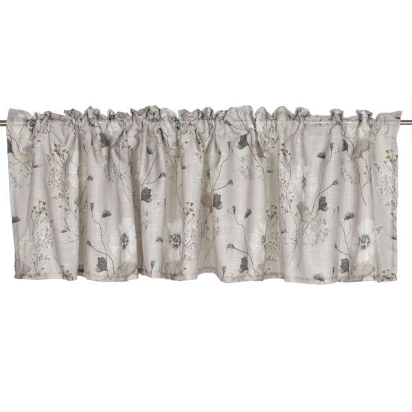 Gardinkappa SABINE med blommor och blad i beige på linnefärgad botten