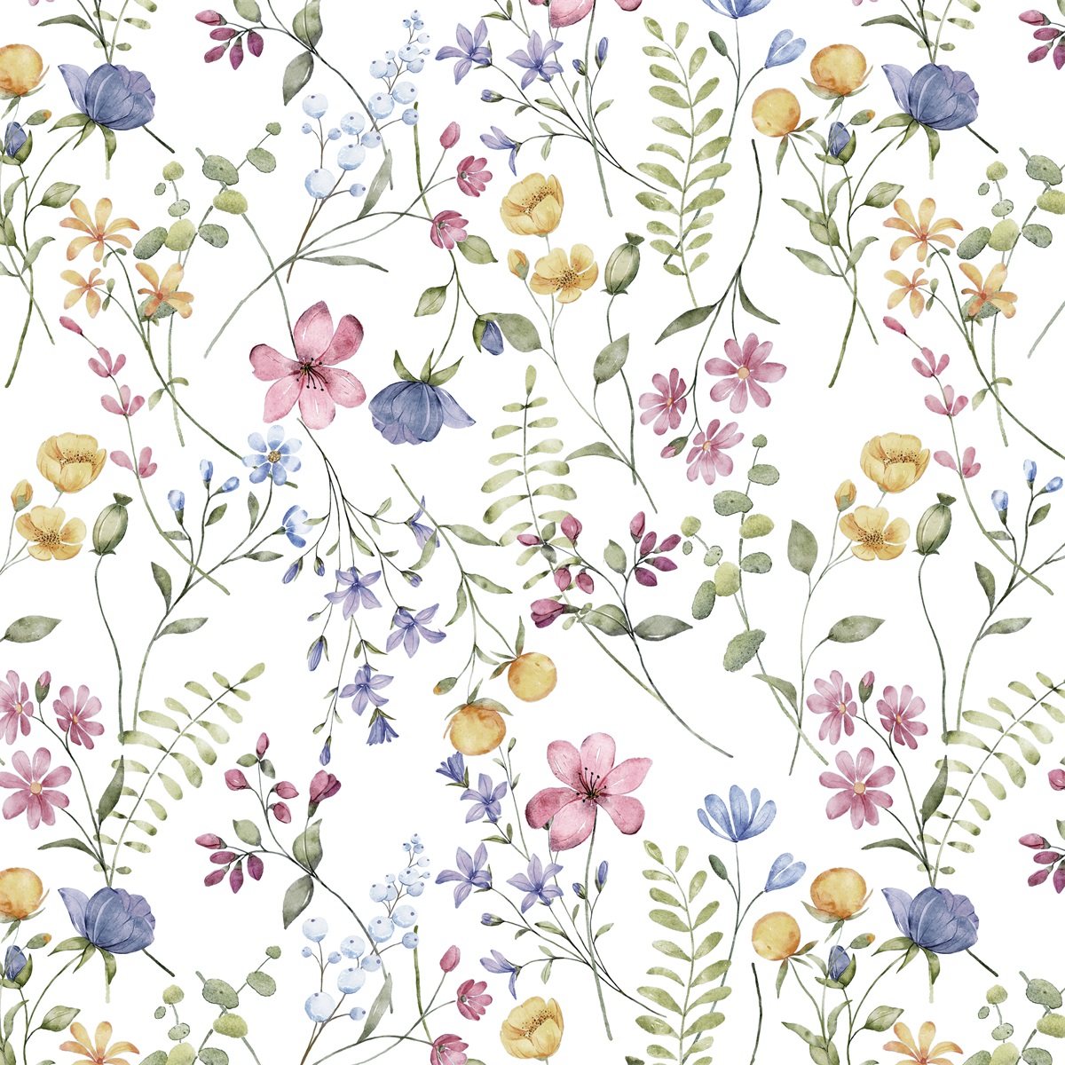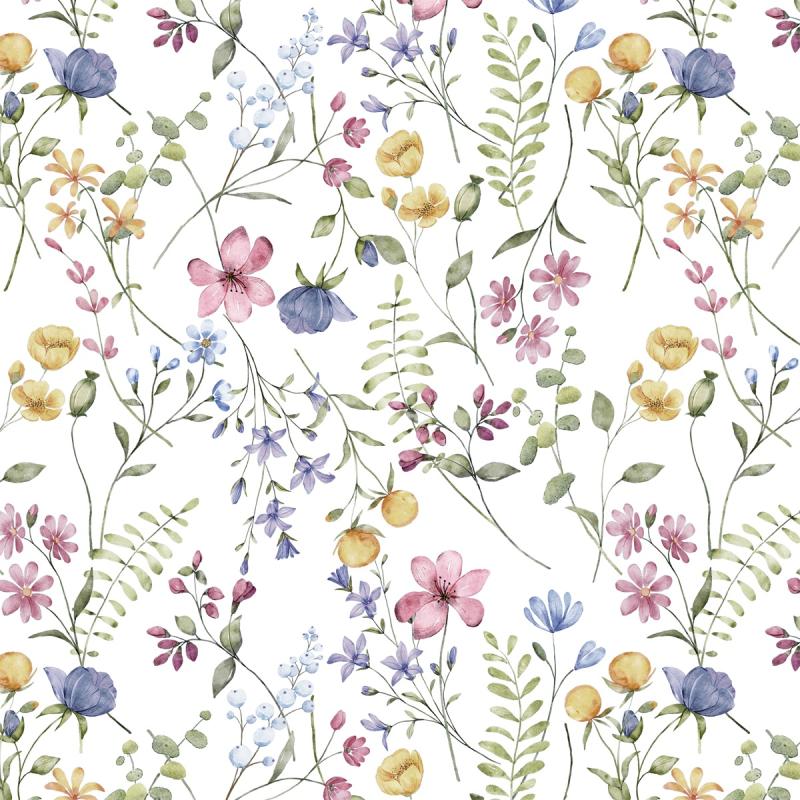 Gardinkappa SOMERSET på metervara, med sommarblommor i rosa, gult och blått