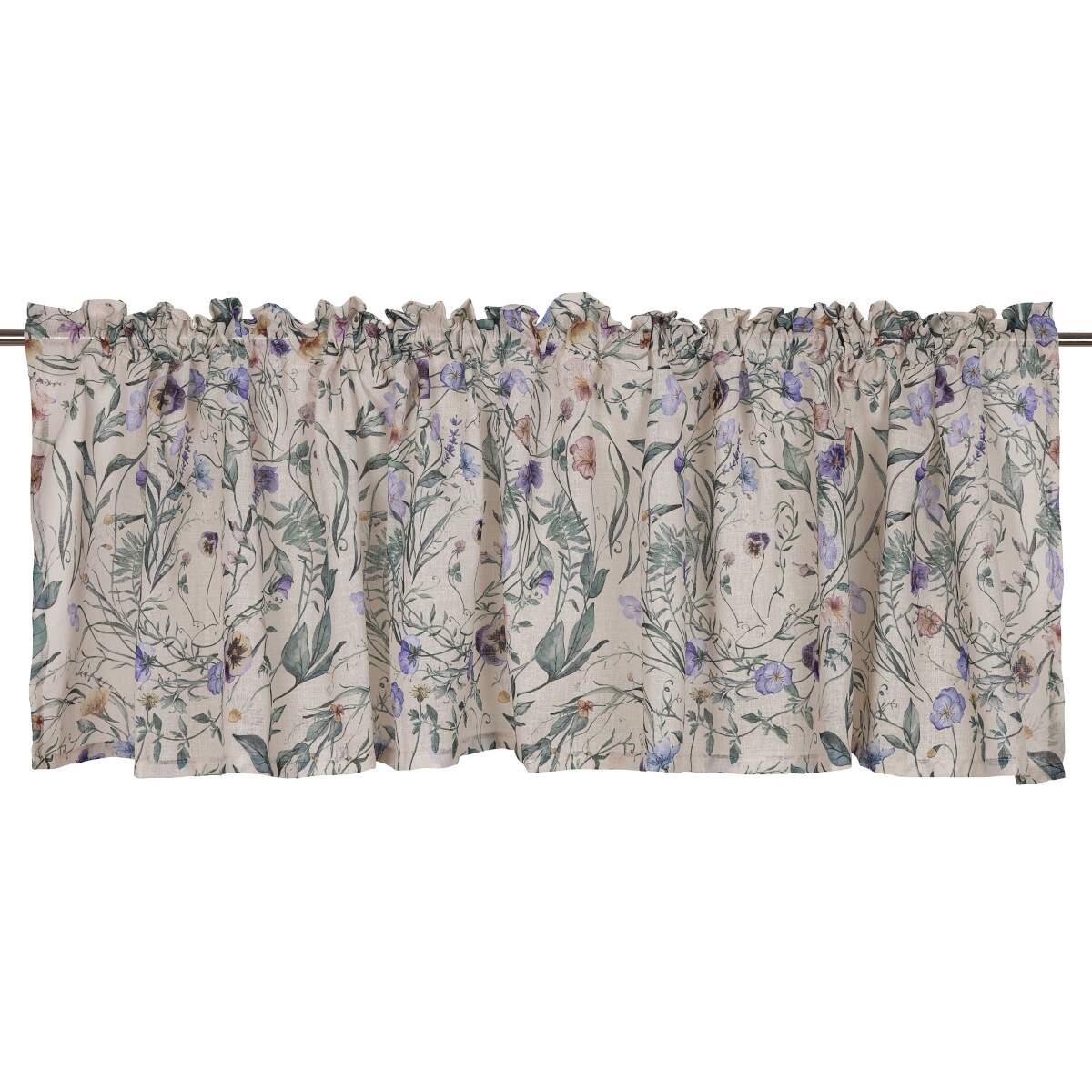 Gardinkappa VIOLA med violer och slingrande blad på sandfärgad botten