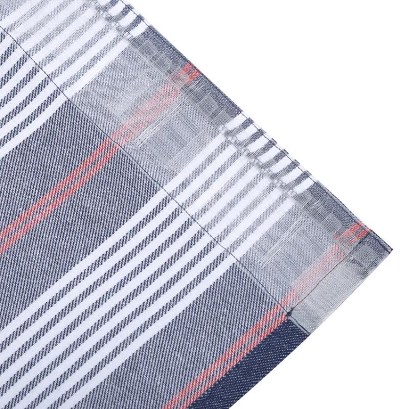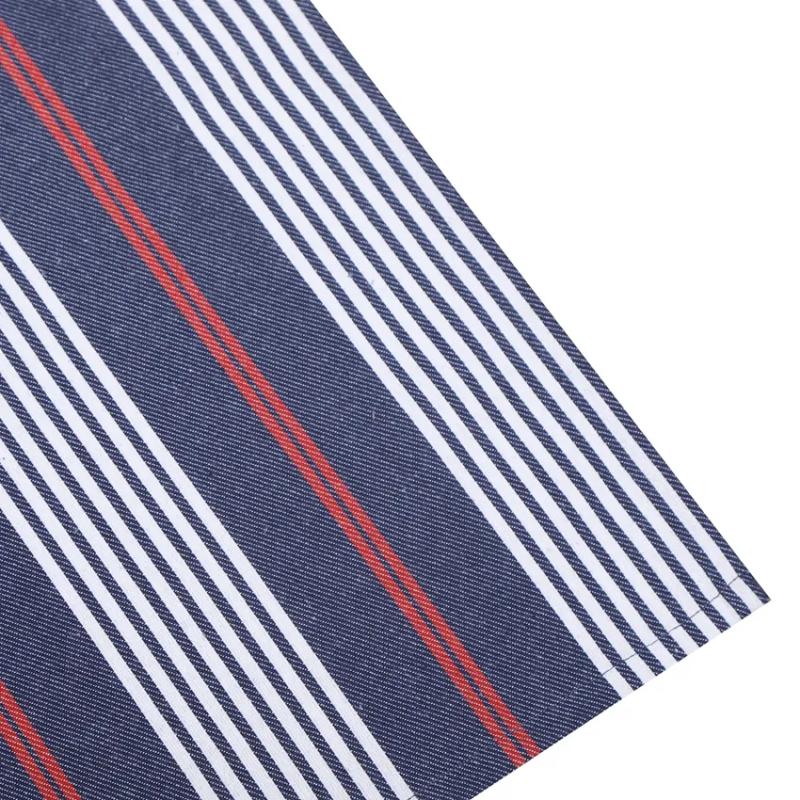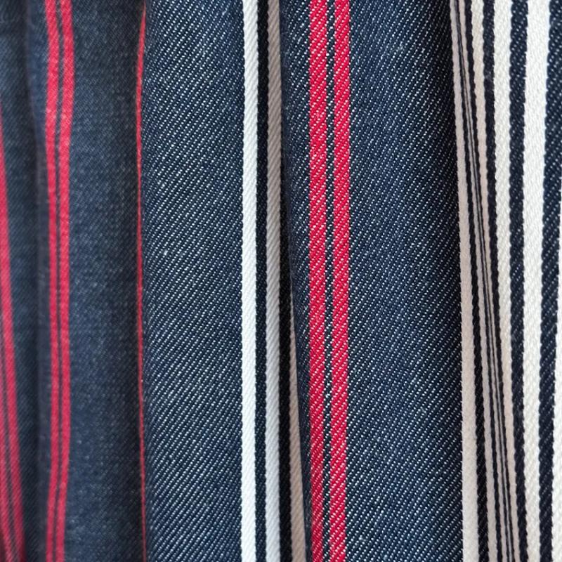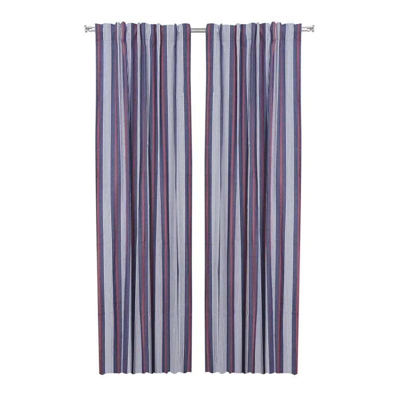 Gardinlängd HAMPUS, återvunnet material, randig i marin stil i marinblått, offwhite och rött