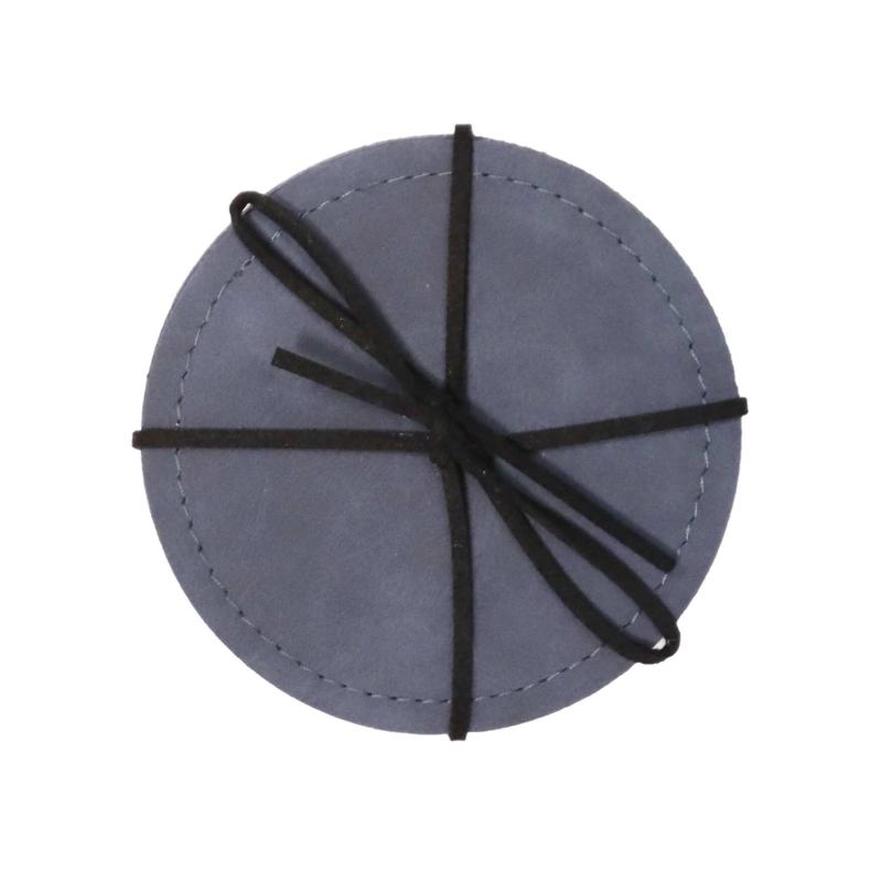 Stl. 4st diameter 10 cm. Runda glasunderlägg Vejby i pvc, här i blått. Skinnimitation med matt yta och kantsöm. Torkas av med lätt fuktad trasa.