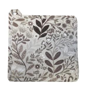 Grillvante Hage med blad och blommor i brungrått och vitt på linnefärgad botten