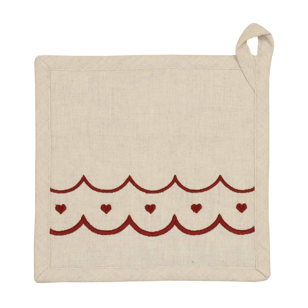 Grytlapp MAJKEN i offwhite med röda broderade hjärtan och vågig kant