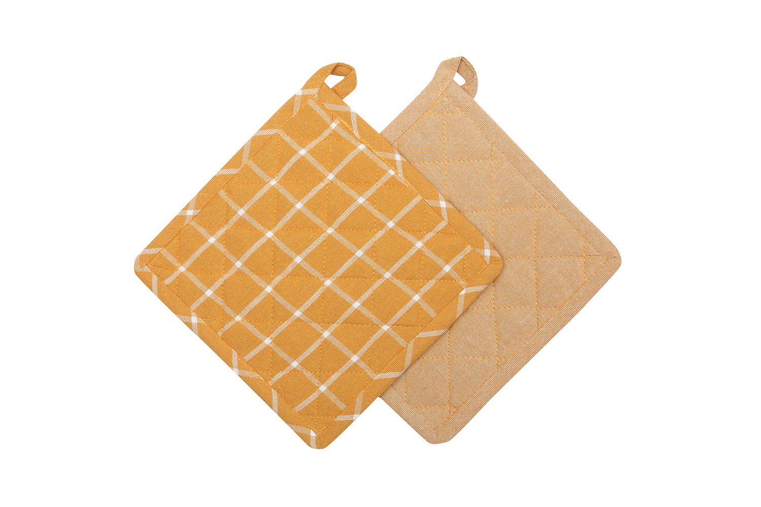 Grytlapp TILDA, 2-pack, återvunnen bomull, rutig i saffransgult, vit och enfärgad gul