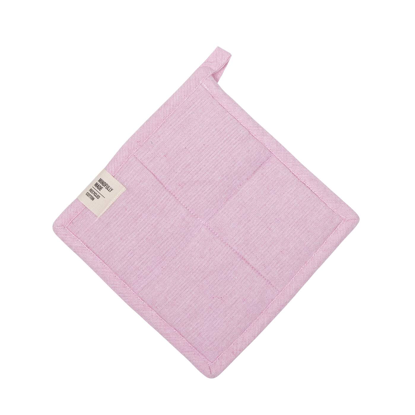 Grytlapp VIDE återvunnen textil, enfärgad rosa med stickningar