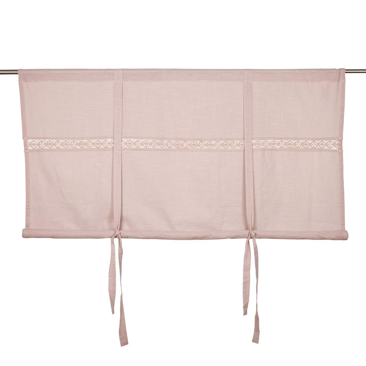 Hissgardin SANNA med infälld spets och band i ljusrosa