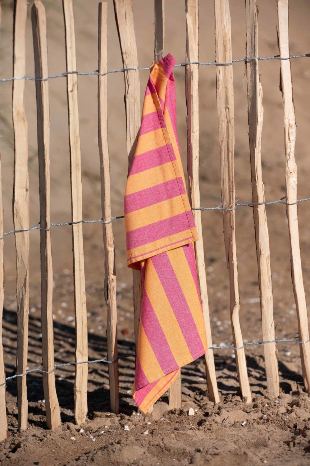 Kökshandduk AMALIA, bredrandig i orange och rosa