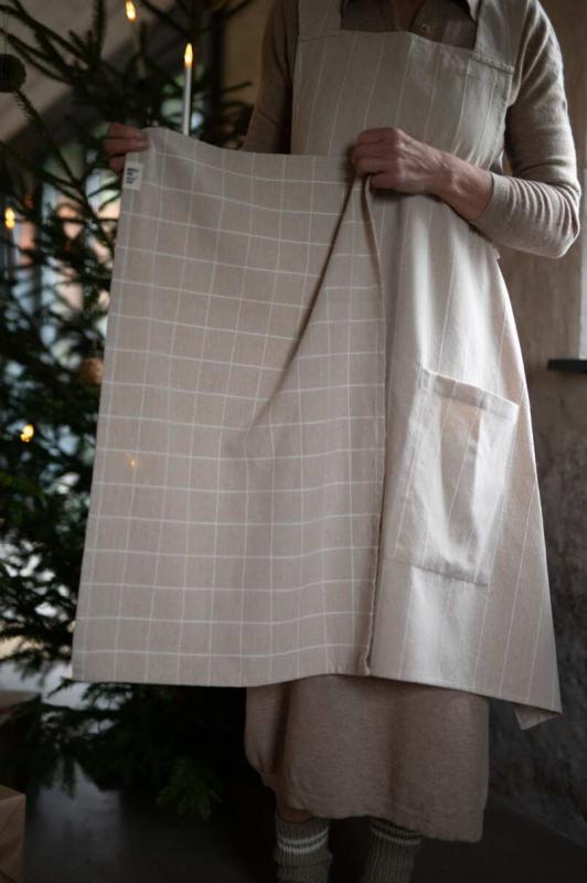 Kökshandduk Axel, i återvunnet material med vävda rutor i antikvitt och beige.
