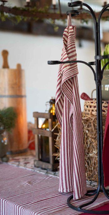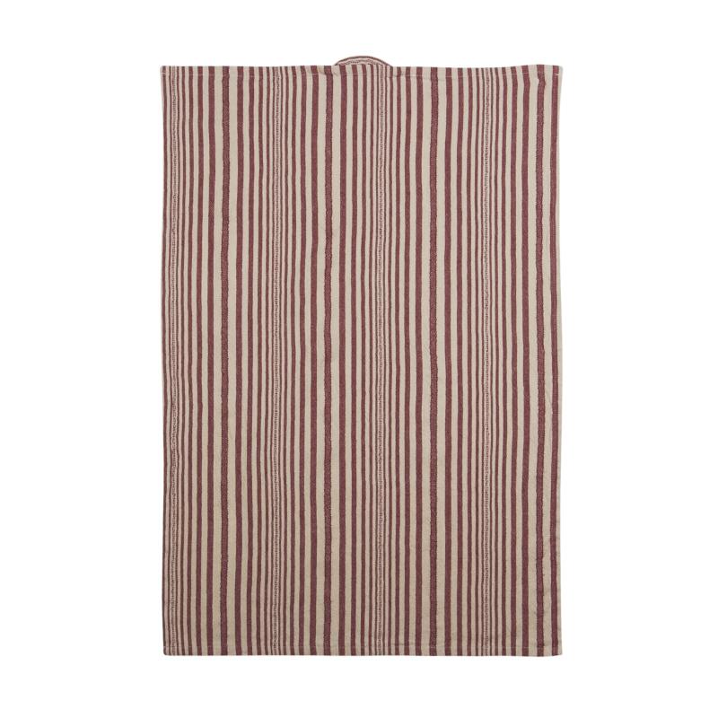 Kökshandduk KARIN, garnvävd, smalrandig i rött, enzymtvättad