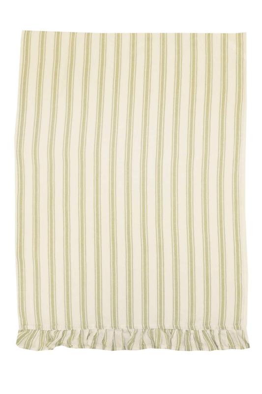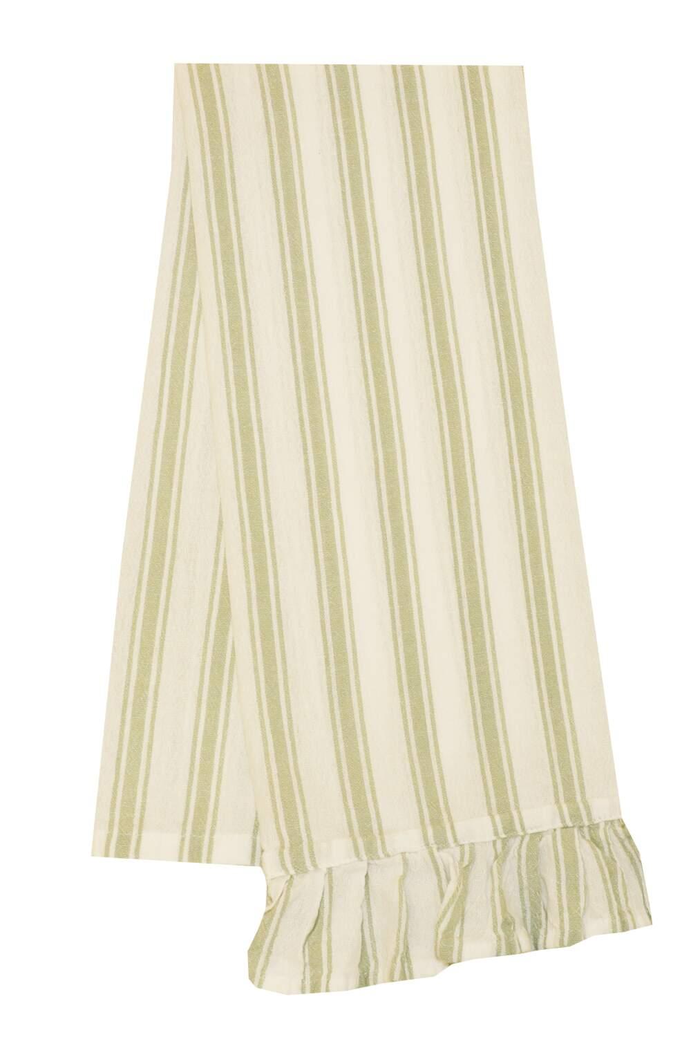 Kökshandduk MADICKEN randig i grönt och offwhite med volang i nederkanten