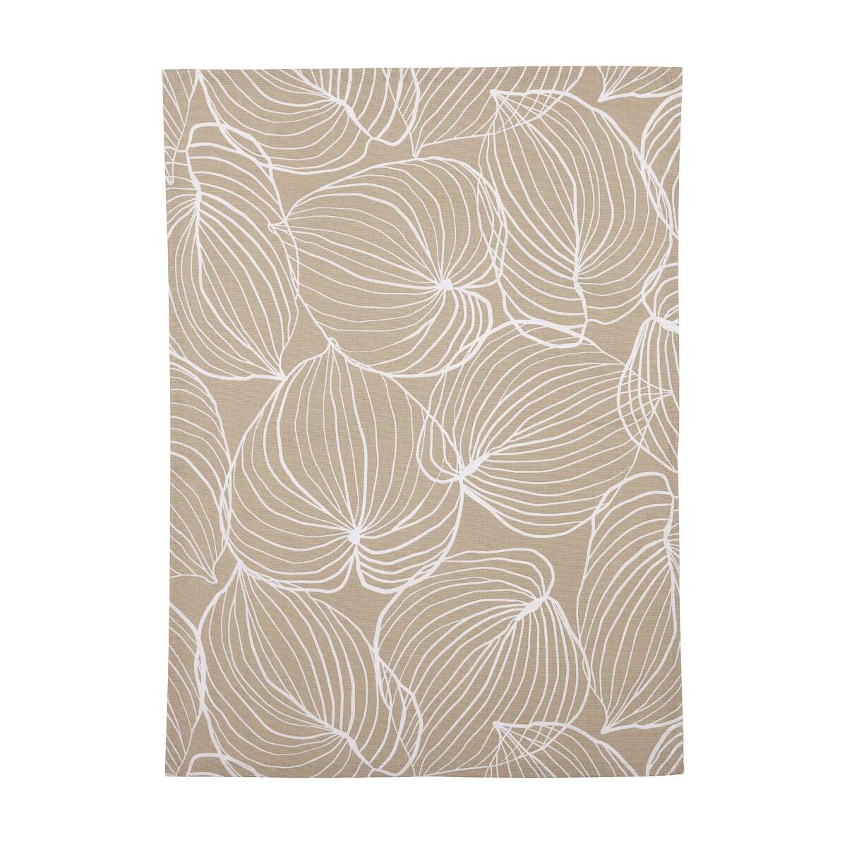 Kökshandduk TILDA med vita ritade blad på linnefärgad botten