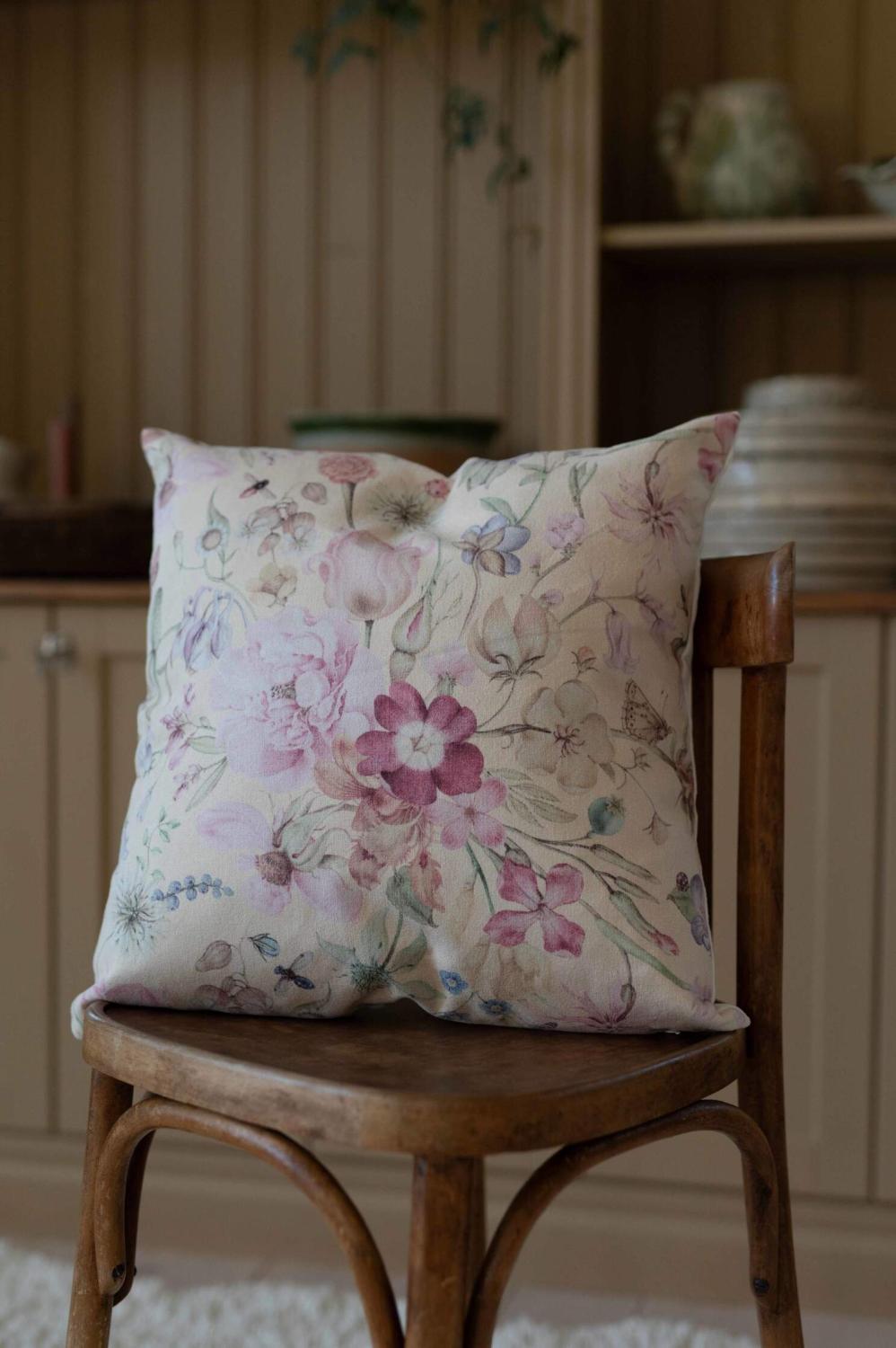 Stl. 48X48 CM. Kuddfodral ALMA med ett romantiskt blommönster på framsidan, tillverkat i en mjuk och härlig kvalitet som ger en behaglig känsla. Baksidan är matchande enfärgad, vilket skapar en fin balans mellan mönster och enkelhet.