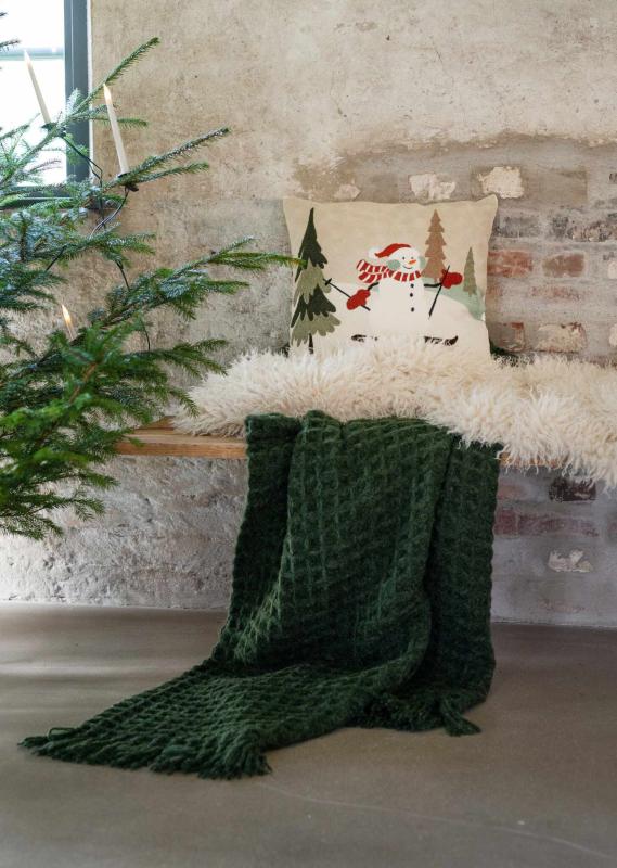 Kuddfodral ALPIN med broderad snögubbe som åker skidor