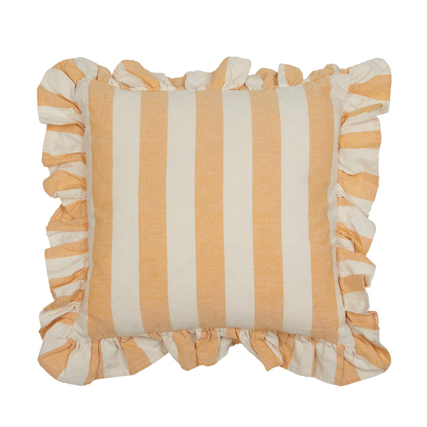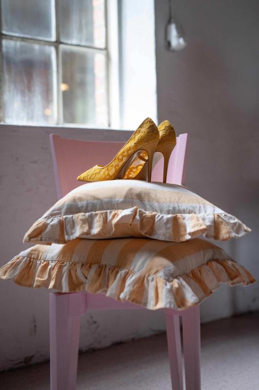 Kuddfodral AMALIA, bredrandig med volang i gult och offwhite