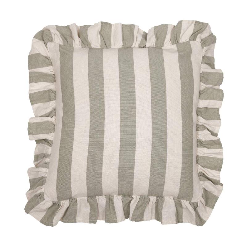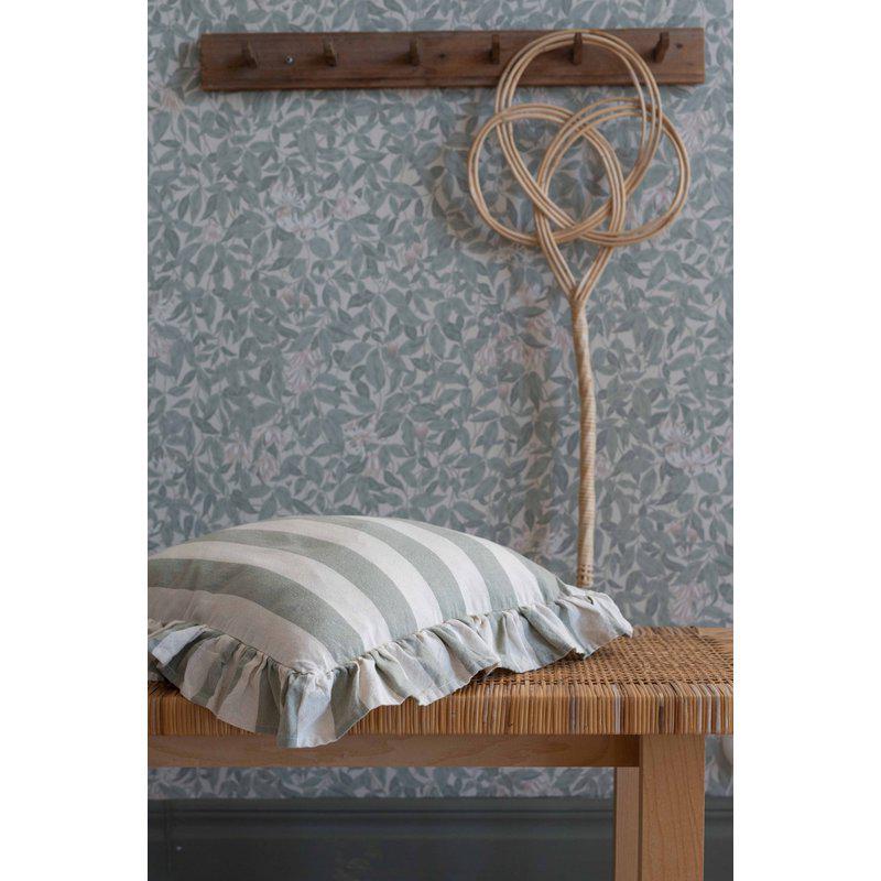 Kuddfodral AMALIA, bredrandig med volang i lindblomsgrönt och offwhite