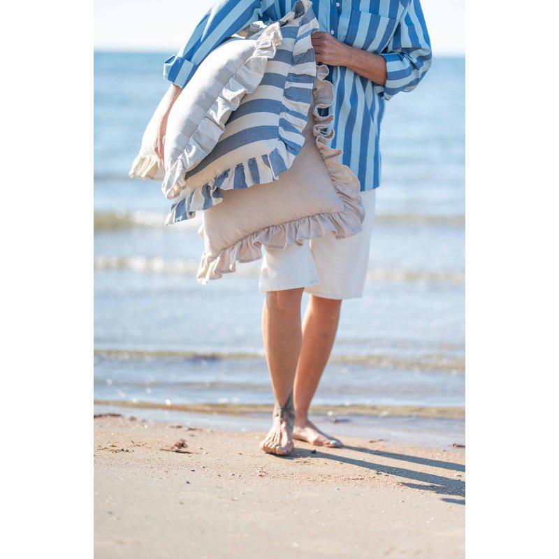 Kuddfodral AMALIA, bredrandig med volang i marinblått och offwhite