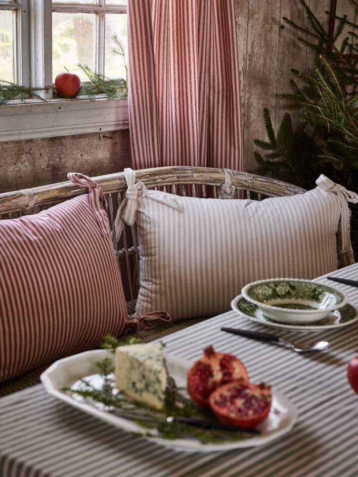 Kuddfodral ANNA, avlångt med smala ränder i linne och offwhite