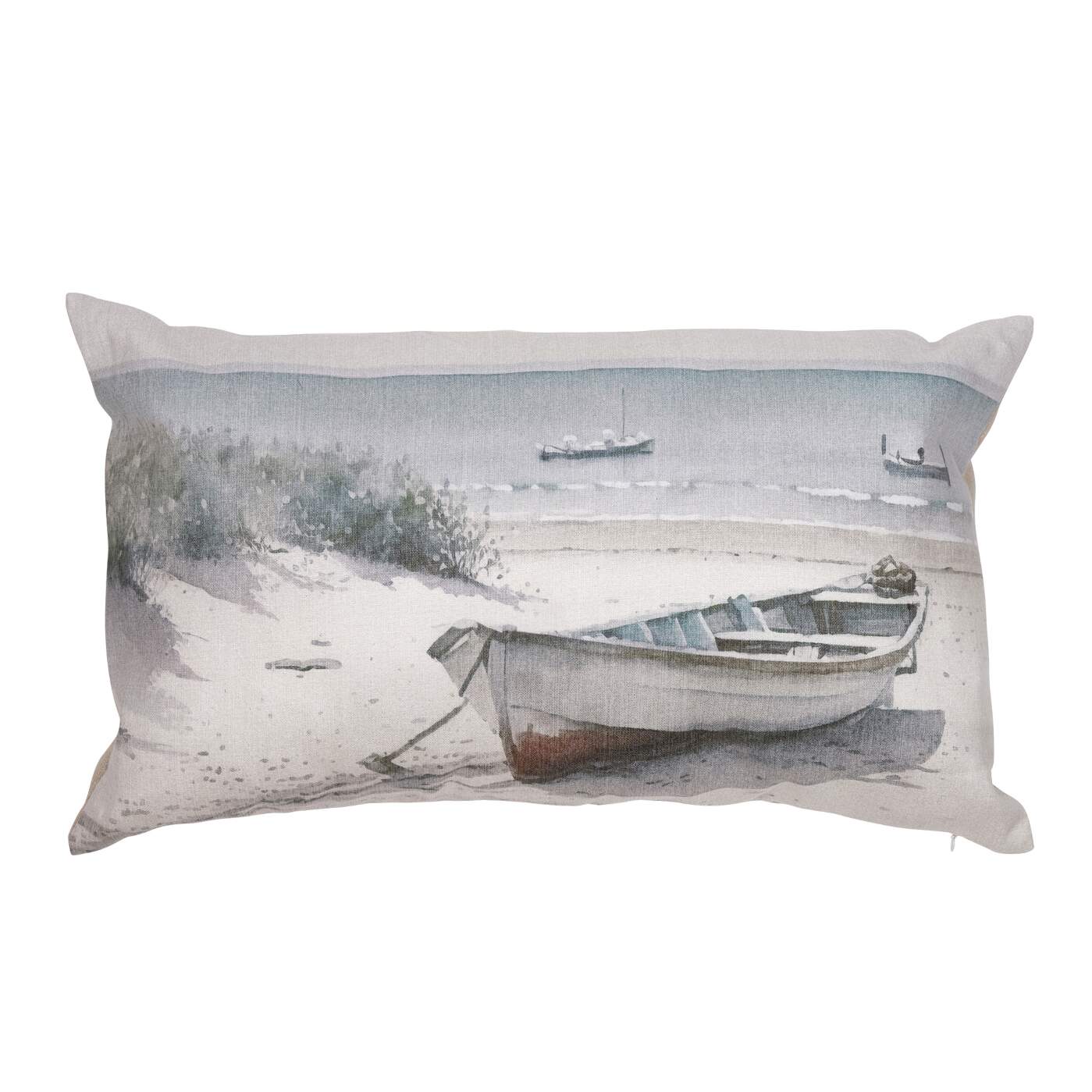 Kuddfodral BÅT i marint tema med en båt uppdragen på stranden