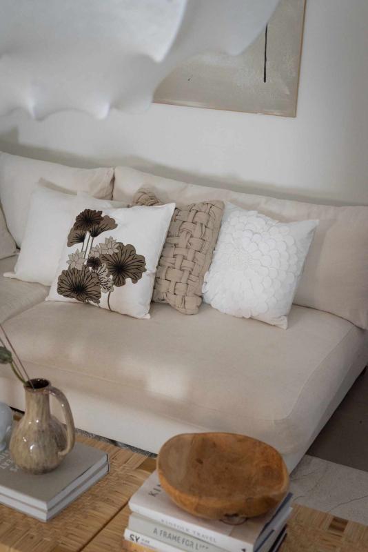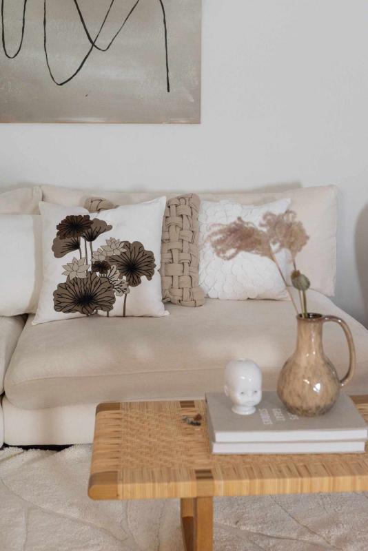Kuddfodral BELLA 48x48 cm, bruna blommor på offwhite botten