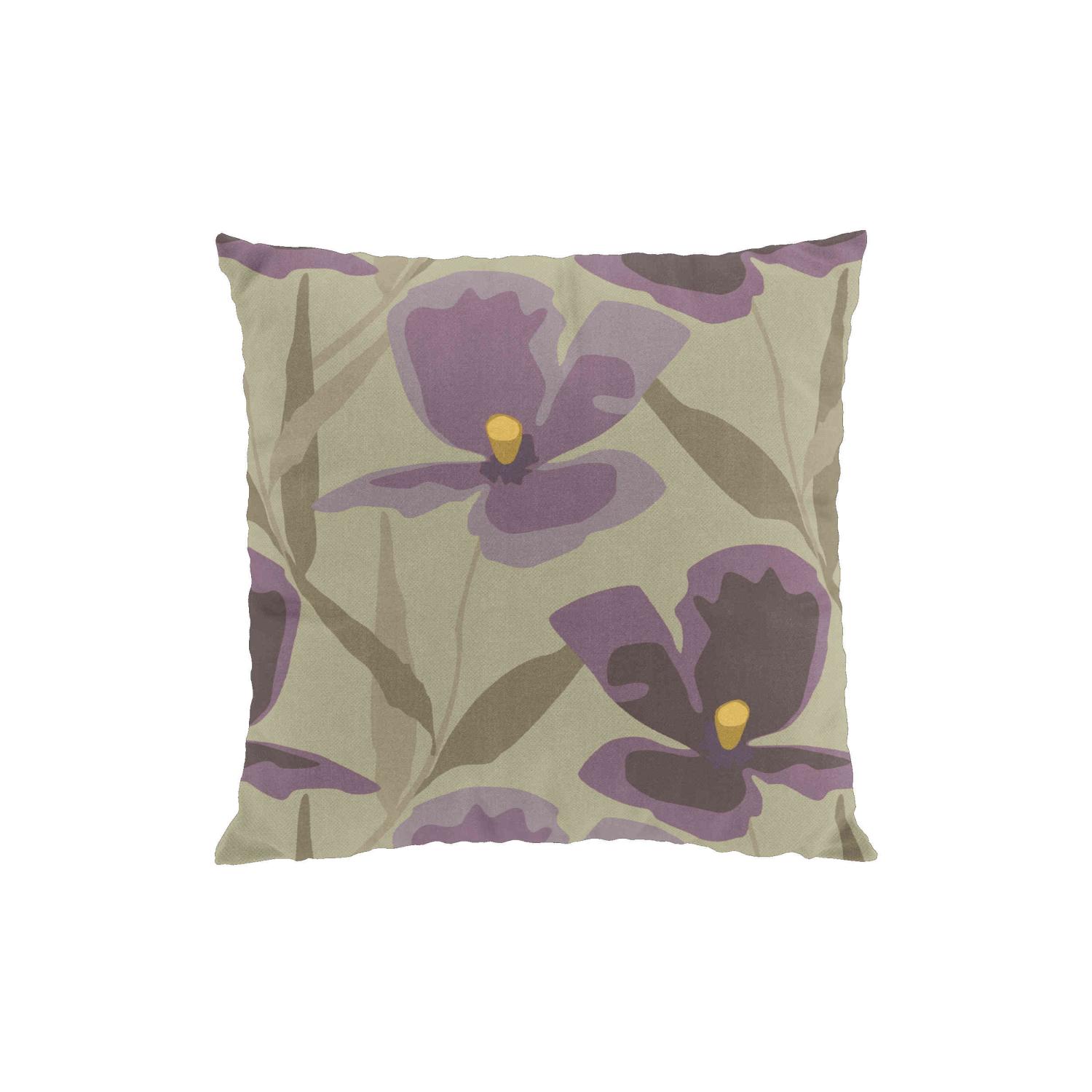 Kuddfodral BLOMSTERSKRUD (Culla) med stora lila blommor på linnefärgad botten