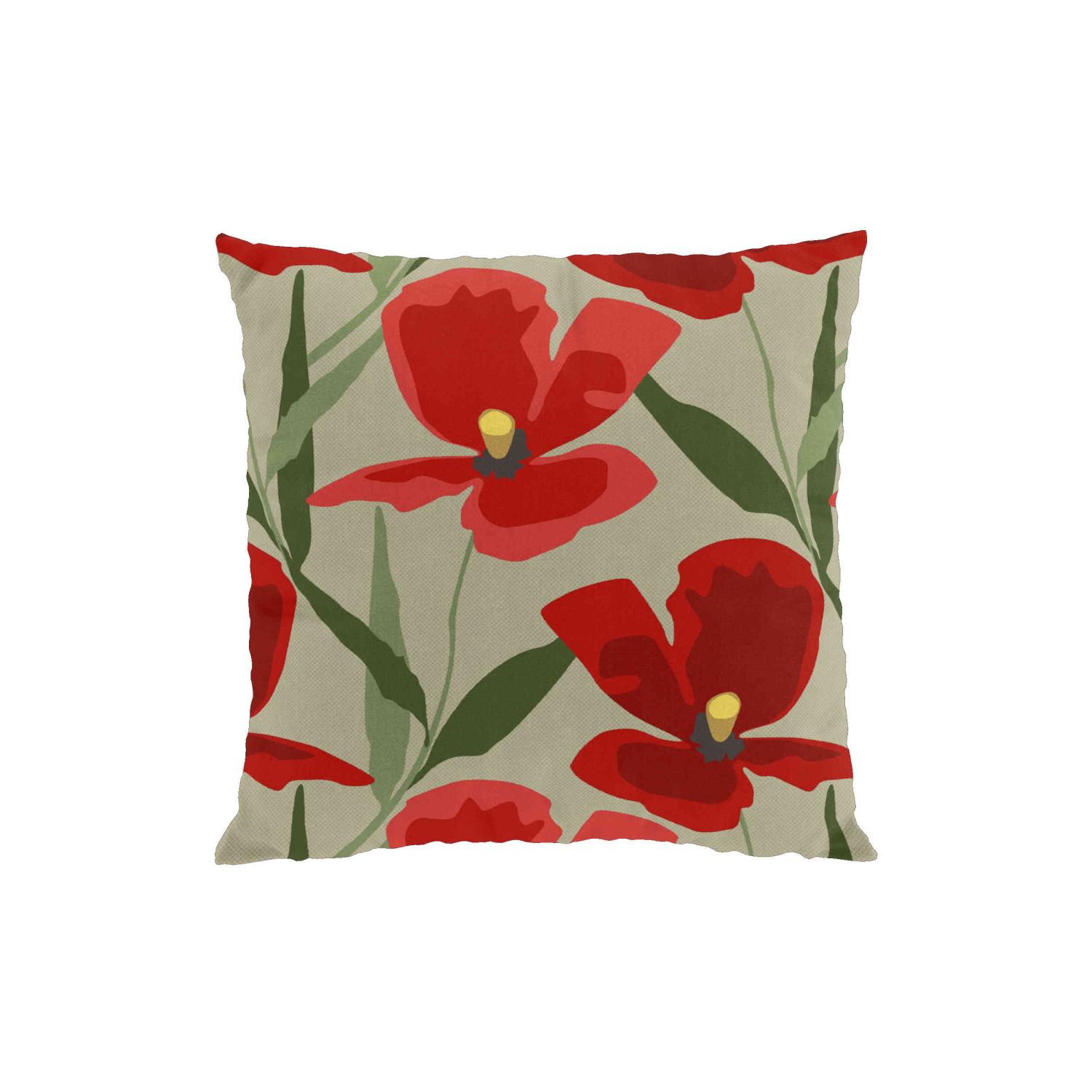 Kuddfodral BLOMSTERSKRUD (Culla) med stora röda blommor på linnefärgad botten