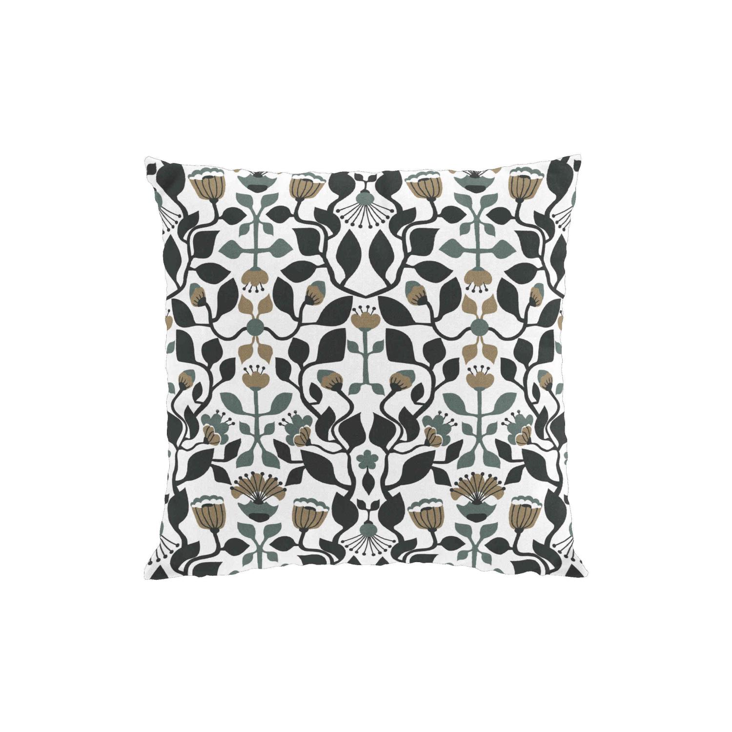 Kuddfodral BLOMSTERSNÅR i medaljongmönster av slingrande blommor och blad i turkos