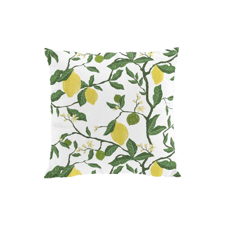 Kuddfodral CITRONTRÄD med gula citron på gröna kvistar, offwhite bottenfärg