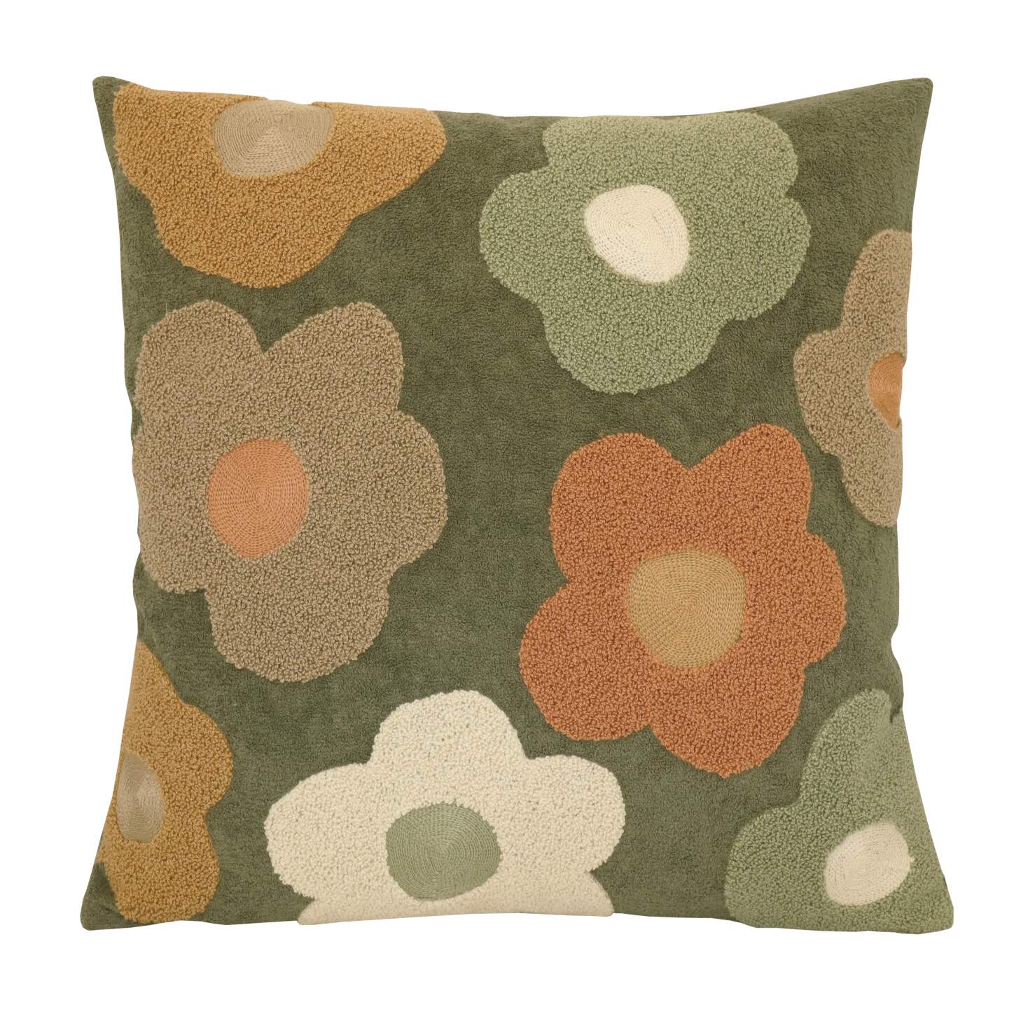 Kuddfodral DAISY med blommor i teddybrodyr i grönt, orange och beige