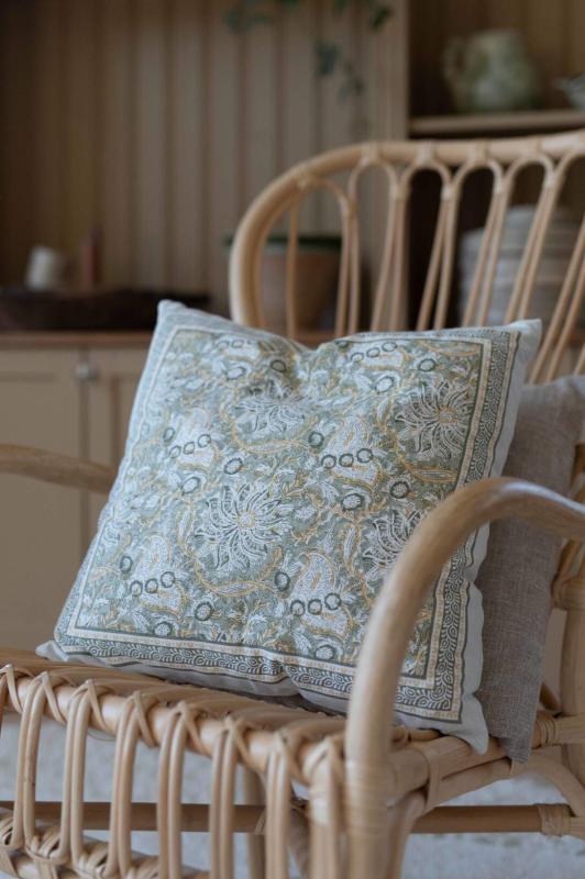 Kuddfodral DANTE, blommig i grönt med bård runt om